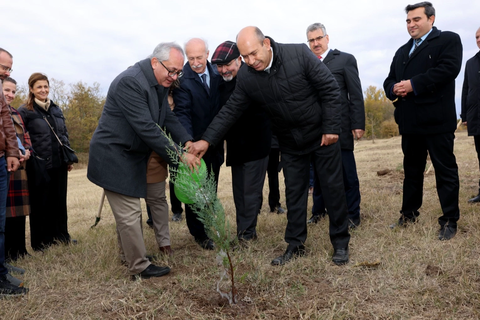 Erdoğan DEMİR / EDİRNE (İGFA) - 11 Kasım Milli Ağaçlandırma Günü nedeniyle düzenlenen 3. Hatıra Ormanı Fidan Dikme Etkinliği'ne Trakya Üniversitesi Rektörü Prof. Dr. Mustafa Hatipler, Tekirdağ Namık Kemal Üniversitesi Rektörü ve Trakya Üniversiteler Birliği Dönem Başkanı Prof. Dr. Mümin Şahin, Rektör Yardımcıları Prof. Dr. Eylem Bayır, Prof. Dr. Mustafa Tan ve Prof. Dr. Ahmet Muzaffer Demir, dekanlar, daire başkanları, akademisyenler, idari personeller ve öğrenciler katıldı.