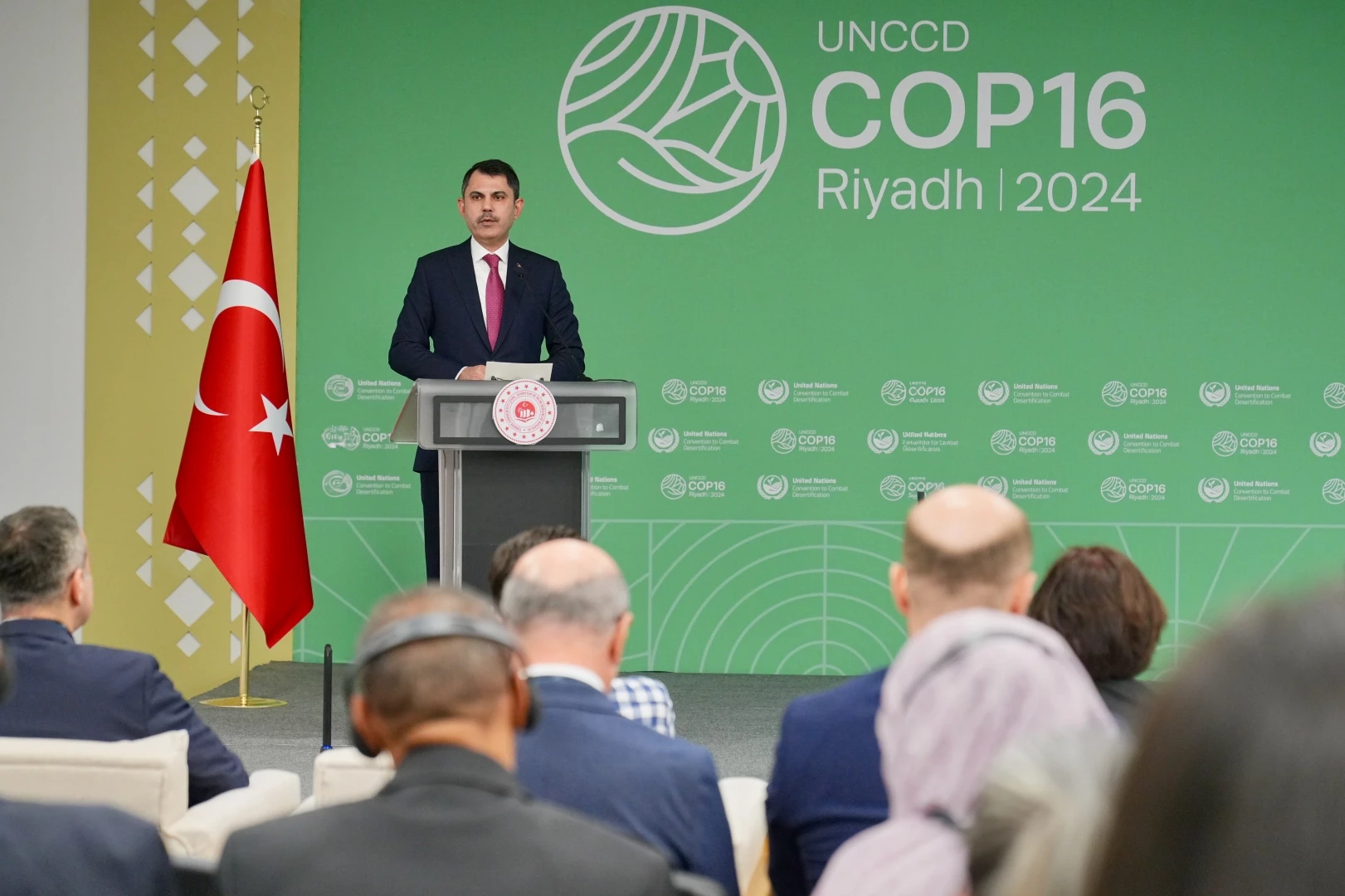 Bakan Kurum, COP16 kapsamında Türkiye’nin “Çölleşmeyle Mücadele Ulusal Stratejisi ve Eylem Planı”nı açıkladı. Bakan Kurum, konuşmasına Cumhurbaşkanı Erdoğan’ın 2015 yılında Ankara’da düzenlenen 12. COP Toplantısı’ndaki “Vicdanların çölleştiği bir dünyada toprağın çölleşmesini önlemek mümkün değildir” sözünü hatırlatarak başladı.