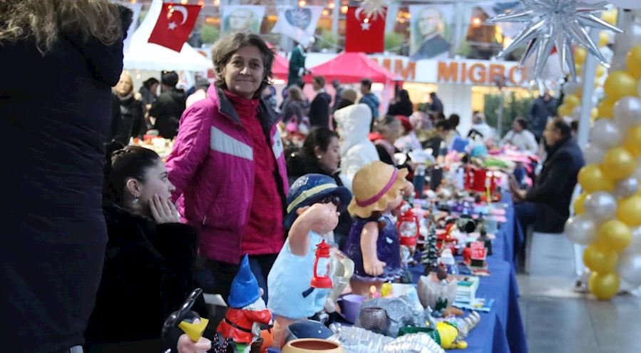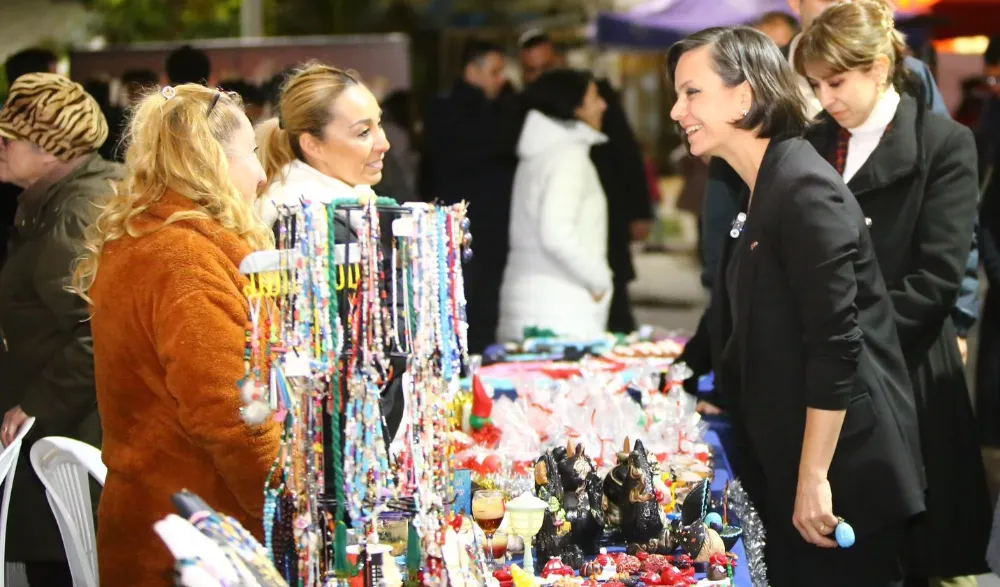 İZMİRPUSULA/ İZMİR Karabağlar Belediyesi'nin yaptığı "Yılbaşı Panayırı" etkinliğinde kadınlar el emeği göz nuru ile hazırladığı hediyelik eşyalarını satışa sunuyor. Açılışa katılan Karabağlar Belediye Başkanı Helil Kınay, üretici kadınları yalnız bırakmayarak destek verdi.